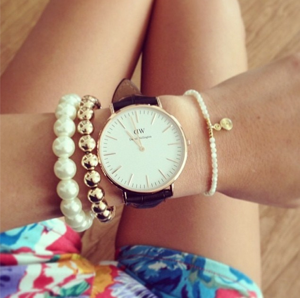 Mig er búið að langa í Daniel Wellington úr í nokkur ár en aldrei látið verða að því, kannski vegna þess að ég á svo fínt úr sjálf. En eftir að hafa rekist svo oft á myndir af þessari einstaklega fallegu og klassísku hönnun undanfarið ætla ég að slá til og kaupa mér það við fyrsta tækifæri. Þessi vel hannaða og látlausa skífa og litríku ólar eru algjört augnakonfekt og fer svo vel á hendi. Einnig er hægt að skipta um ól eftir því sem við á sem gerir notkunarmöguleikana fjölmarga. Úrið á því við við öll tilefni, hvort sem það er dags daglega við vinnu/skóla, fínt jakkafataboð eða heitur dagur á ströndinni.