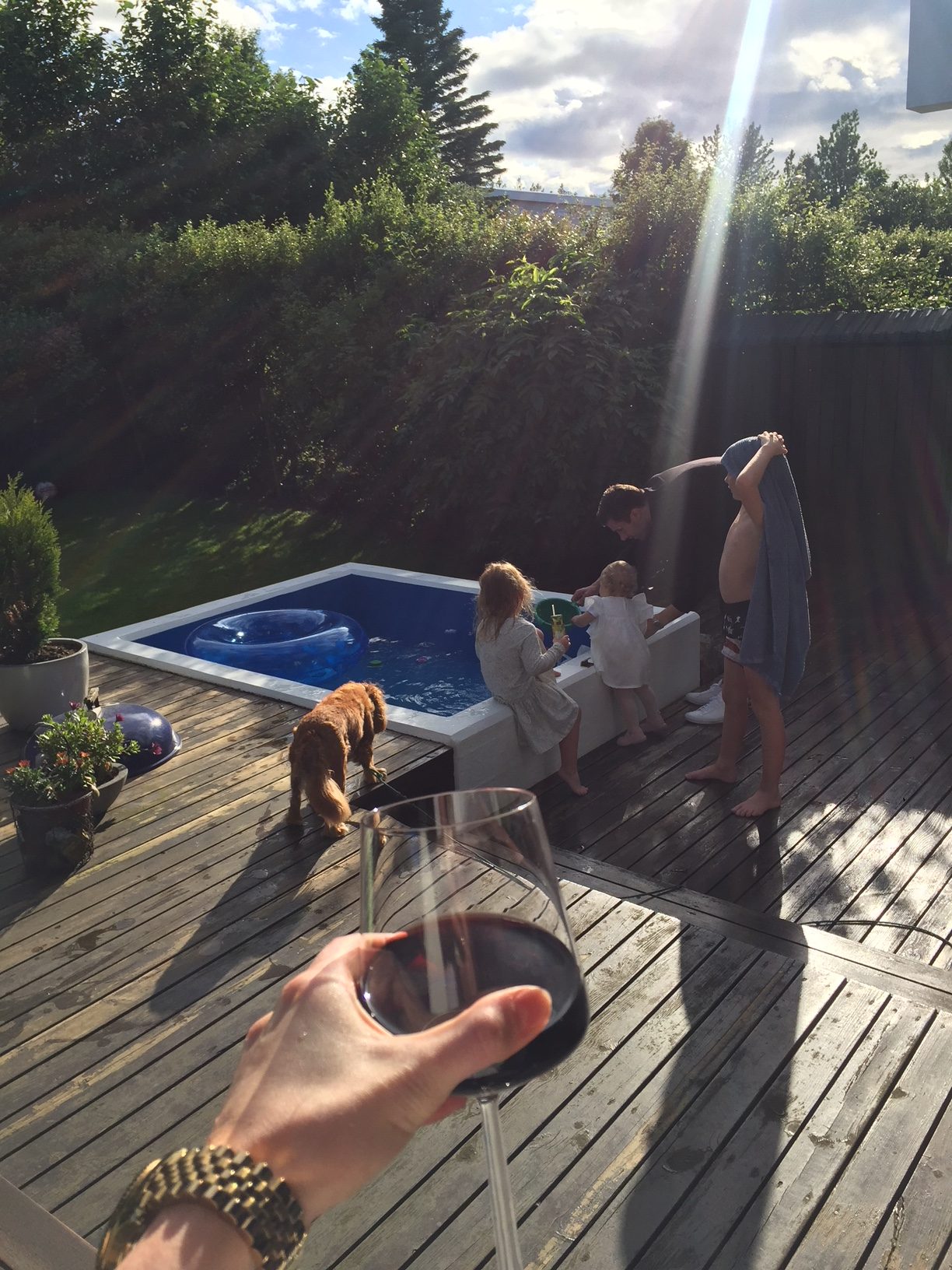 Á föstudeginum brunuðum við svo upp í Borgarfjörð þar sem við eyddum Verslunarmannahelginni með vinum okkar í sumarbústað! Við vorum 5 pör ásamt börnum og skemmtum við okkur konunglega. Við lifum öll enn á þeirri helgi, svo gaman var það! Við fengum dásamlegt veður en sólin skein á okkur nánast allan tímann, borðuðum góðan mat, drykki og sungum og spiluðum fram á nótt! Við komum svo heim á sunnudeginum en þá átti Inga Rún, stóra systir mín 35 ára afmæli, hvorki meira né minna. Því var haldið beinustu leið í Garðabæinn í meiriháttar afmælisdinner! Sunnudagskvöldið endaði svo óvænt í drykkjum með vinum okkar niðri í bæ!