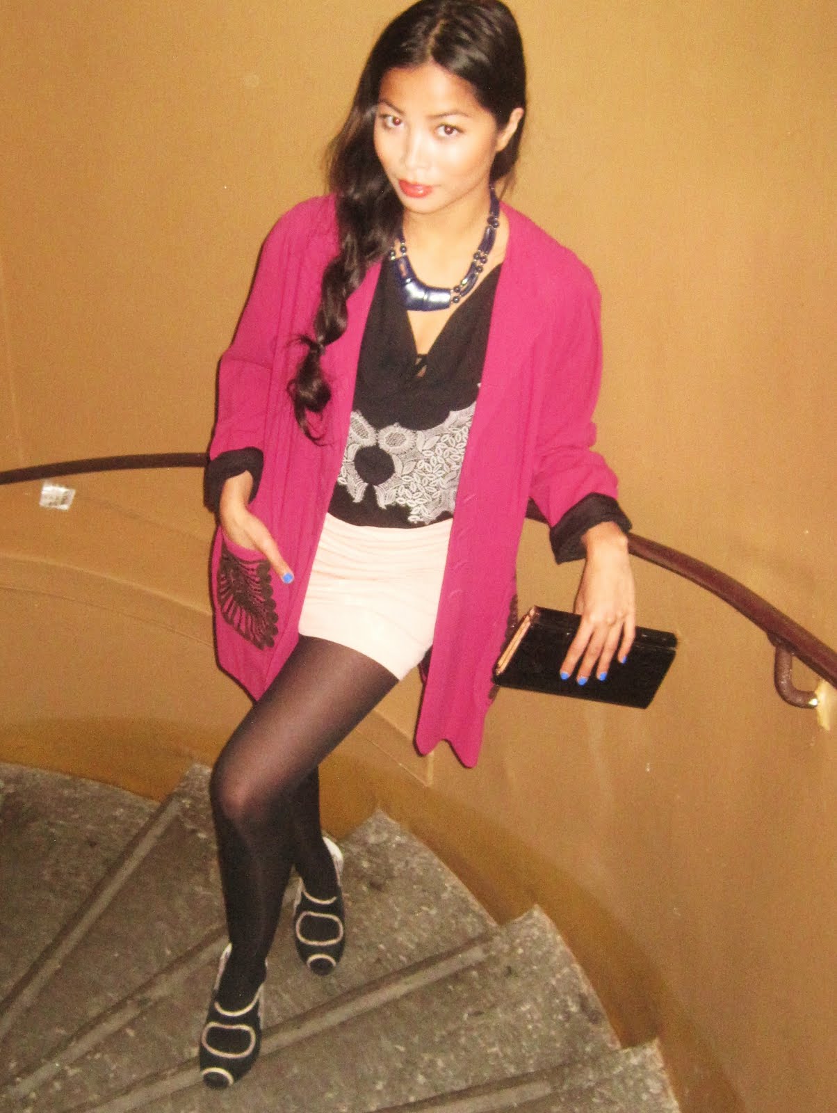 Necklace/clutch/oversized blazer-Vintage & H&M bra.