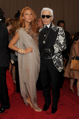 Blake Lively in Chanel Haute Couture with Karl Lagerfeld – Diane Kruger in Jason Wu with Jason Wu – Natasha Poly in Alexander Wang with the designer – Vera Wang in her own design – Miranda Kerr in Marchesa with her Orlando Bloom – Kerry Washington in Escada – Liu Wen and Constance Jablonski in Alexander McQueen – Gisele Bundchen with Tom Brady in Alexander McQueen. Coco Rocha in Alexander McQueen.
