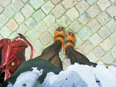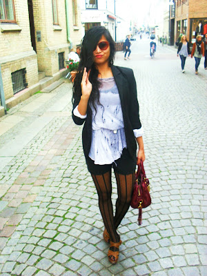 EARLIER that day-shirt (worn with a belt) Zara, suede shorts-Gina tricot, tights-Topshop, wedges-from Italy, bag- Marc Jacobs, same blazer.