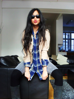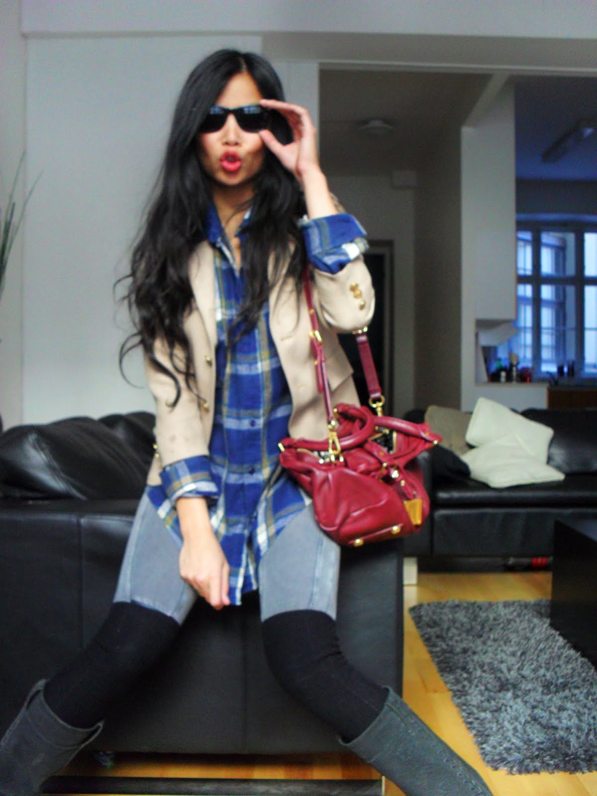 YESTERDAY’s outfit, blazer/workshirt-Vintage, leggings-Gina Tricot, socks-H&M, Boots-Bronx, Bag-Marc Jacobs, Sunnies-Ray Ban.