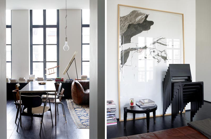 Kemur vel út að blanda saman ýmsum stólum í þessari íbúð.