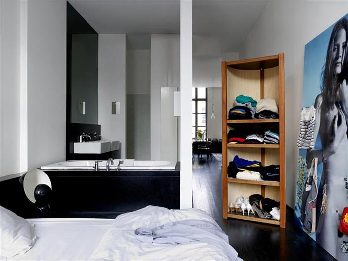Í íbúðinni eru engar hurðar að finna, eigandinn fílar ekki slíkt.