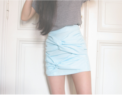 Þú byrjar á því að klippa 2x kassa fyrir pilsið. Svo títiprjónaru lykkjurnar á framhliðina á pilsinu (áður en þú saumar pilsið saman) -eins og sést á myndinni. Þá saumaru yfir títiprjónana til að festa lykkjurnar á pilsið. Svo mæli ég með að leggja hinn partinn af pilsinu ofaná og títipróna saman. Á þessu stigi er pilsið á röngunni.Svo saumaru pilsið saman, faldar að neðan og getur sett stroff af ofan ef þú vilt, annars bara falda.