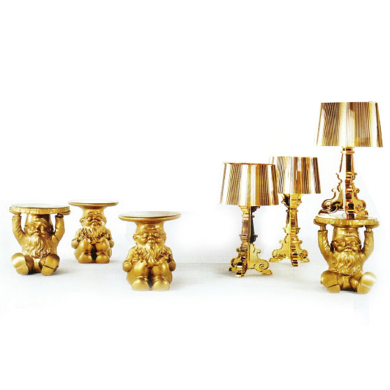 Bourgie lampinn eftir Ferruccio Laviani og álfakollar eftir Philippe Starck