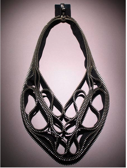 Þessi trufluðu hálsmen sem búin eru til úr rennilásum eru eftir Kate Cusack og fást á Etsy.com síðunni..