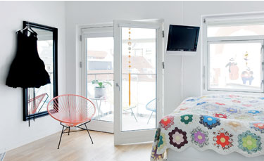 Allir veggir hvítir nema þessi eini er fjólublár